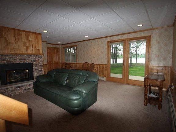 Waterfront home ready for new owners! This home offers a 2 car attached garage nestled in this park-like setting on the shores of Lake Creek, part of the Rhinelander Chain. Partake in all the activities that a full recreation body of water offers. With 1,300+ acres of water there's a niche for every passion. Main level of this low maintenance home is the kitchen/dining/living room. Walk-out lower level has family room with gas fireplace, and 3/4 bath. And level frontage!