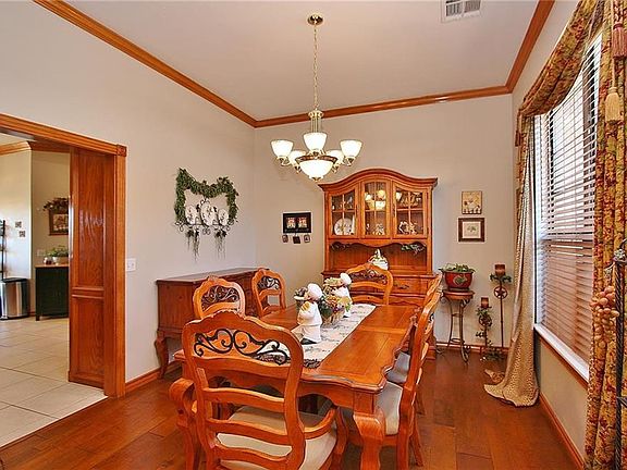 There's not much to compare to country living! Just across the Canadian River, close to the airport, is the setting for this fabulous home! Lot is almost an acre, and boasts a 4 bed, 2 1/2 bath home with two dining areas and a study. Beautiful wood touches throughout the home include crown molding, wood floors in the Living and Dining Rooms, and custom cabinets. Large insulated shop, 30' x 40', with electricity, RV parking and a covered patio the full length of the shop. Storm shelter in garage for added peace of mind.