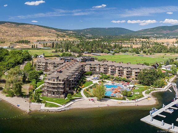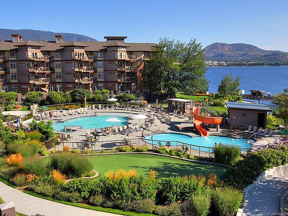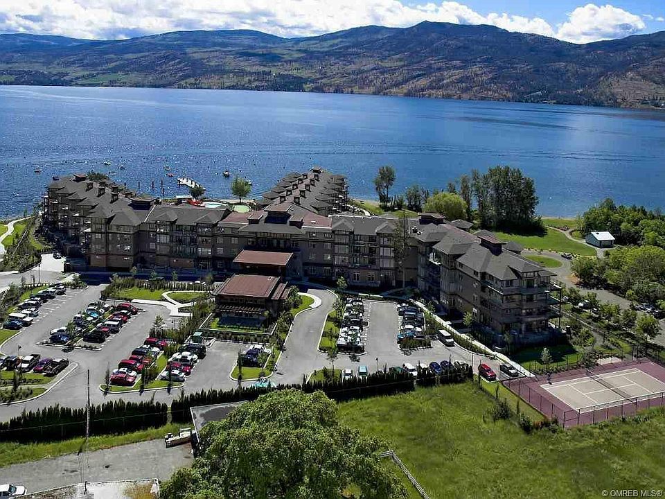 The Cove Lakeside Resort, one of the Okanagan's finest luxury LAKEFRONT properties! Spectacular 1822 sq. ft. 3 bdrm /3 and half baths plus a den. Breathtaking views of the surrounding mountains & views of the LAKE! Spacious deck overlooking the park & lake with south west sun exposure, accessed from great room & master bdrm. Open concept main living area, tasteful high-end finishes including granite island kitchen, maple cabinetry. Luxurious ensuites in 2 bedrooms. The Resort is set on 6.5 acres with 600 ft of WATERFRONT and sandy beach. Fully furnished/turn key. Optional rental pool professionally managed. Strata fees include - Geothermal heating & cooling - Amenities include destination spa, private marina, 2 pools, hot tub, water slide, tennis courts, beachfront walkway, restaurant, licensed lounge. Enjoy a year-round vacation destination minutes to golf, world-class wineries including Mission Hill and Quail's Gate.