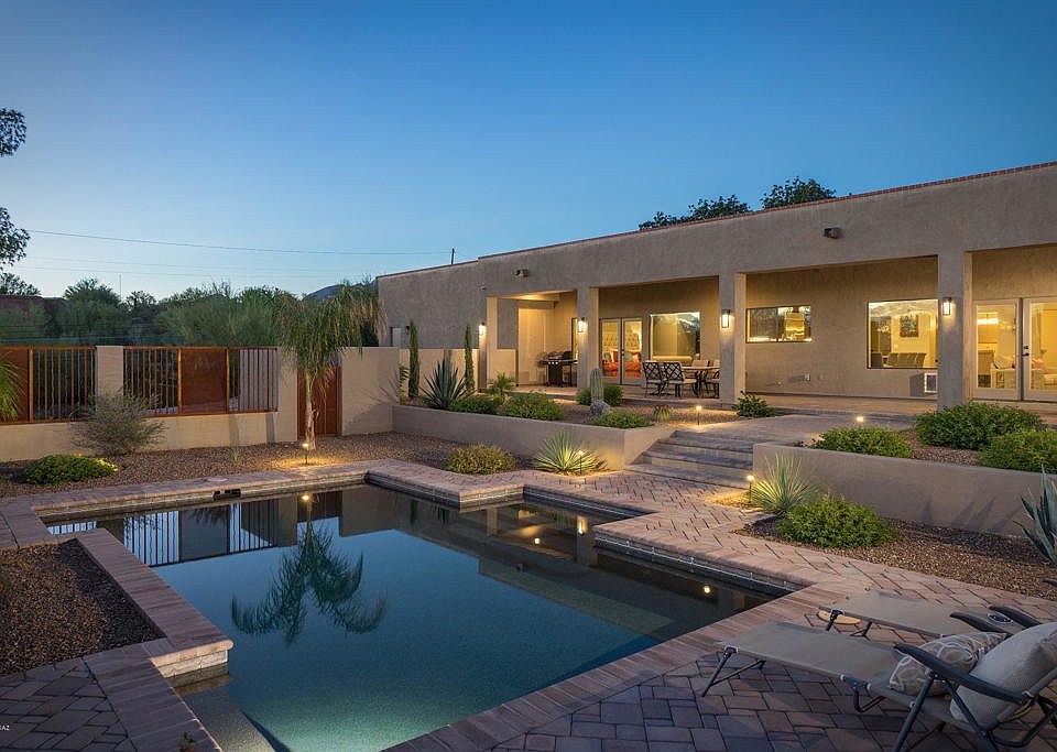 LOCATED IN THE DESIRABLE FOOTHILLS COMMUNITY OF FLECHA CAIDA, THIS CONTEMPORARY HOME IS A CONCEPTION OF LIGHT & DESIGN, SHOWCASING SWEEPING CITY & MTN VIEWS. UPDATED IN 2016, THIS STUNNING HOME FEATURES NEW CABINETRY, PAINT & FIXTURES. IT UTILIZES A DELICATE BALANCE OF CONTEMPORARY MATERIALS, TEXTURES & FINISHES, BRINGING A SENSE OF MODERN ELEGANCE TO THE SPACE. EVOKING FAMILY-STYLE LIVING, THIS HOME EMPLOYS AN OPEN-LIVING DINING & KITCHEN AREA WHICH ACT AS THE PRIMARY GATHERING POINT. A SPLIT BDRM PLAN OFFERS DEDICATED MASTER-WING W/ LG SPA-LIKE BATH & OVERSIZED WALK-IN CLOSET, 3 ADDITIONAL BDRMS ON THEIR OWN WING & LG PRIVATE OFFICE. ROOMS OPEN TO COVERED REAR PATIO, DESIGNED TO EXTEND HOME'S SQ FTAGE & BLUR DISTINCTION BTWN INDOOR & OUTDOOR SPACES, OVERLOOKING RESORT-LIKE YARD & POOL.