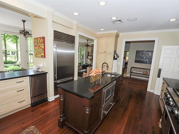 Lovely traditional Eastover home with beautiful pine floors! Five bedrooms, 4 1/2 baths - fifth bedroom could be a bonus/playroom. Master & guest rooms down and three up. Formal living room with fireplace, formal dining and great looking study with pecky cypress bookshelves and fireplace. Wonderful sunroom/den with breakfast area, brick floors, built-in cabinets, a wood-burning fireplace and floor to ceiling windows overlooking the lush professionally landscaped patio and backyard. State-of-the-art renovated kitchen with granite countertops and top of the line appliances. Lots of natural light. Upstairs bedrooms are very large. New roof 2014. Gorgeous outdoor entertaining! Ample parking and fantastic storage.