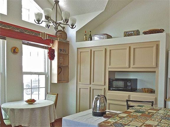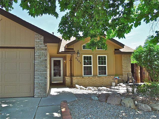Reduced! 1-story, brick, Taylor Ranch home w/spectacular, mountain & city light views. Featuring 2 masters plus 2 other bedrooms, a spacious kitchen w/tons of counter & cabinet space, nook area with cathedral windows & breakfast bar that opens to dining area - den. The great room has office area w/built-in shelves, picture windows for tons of natural light that overlook a huge backyard w/brick patio, fruit trees, rock maze & storage. Tasteful, SW accents, pellet stove and brick floors throughout except newer carpet in bedrooms & tile in 3 baths. This home features soaring ceilings, curved entryways & ledges, newer EVAP cooler, Low E windows, recessed lights, walk-in closet, garden tub, skylights, small hobby room & easy access to shopping, amenities, Montano, Paseo del Norte, Coors & I40.