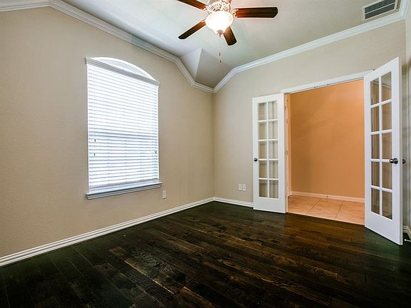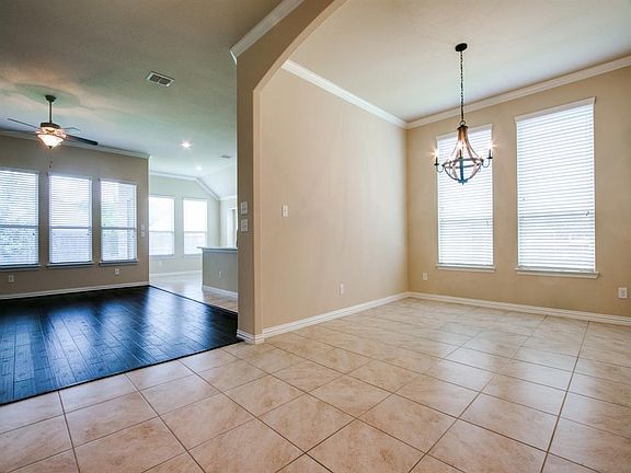 Lovely one story brick and stone home in desirable neighborhood. Move in ready, tiled entry leads past an office and dining area to the open concept living area complete with new hand scraped hardwood floors. Great for entertaining... living area opens to kitchen and eat in area on to the patio and a lovely backyard. Bedrooms are separate and office could be used as fourth bedroom. Master Bedroom at the back of the home for privacy. Master Suite offers dual sinks, lots of storage, garden tub, separate shower, WC, and a walk in closet. Vaulted ceilings throughout and lots of crown molding! Highly desirable neighborhood offers community park with pool Bring your buyers before this one slips away.