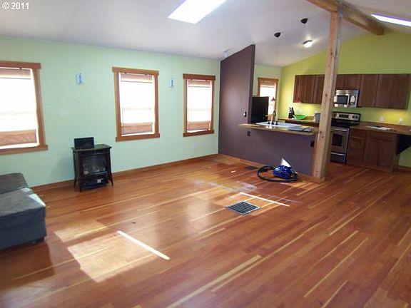 Lots of potential here in this SE Portland Bungalo. Spacious & Open Great Room Floor Plan with Vaulted Ceilings, Wood Floors & Skylights. Updated Kitchen with Lots of Storage & Counter Space. Huge Master Bedroom, Large Clean & Bright Basement with Laundry Hook ups.