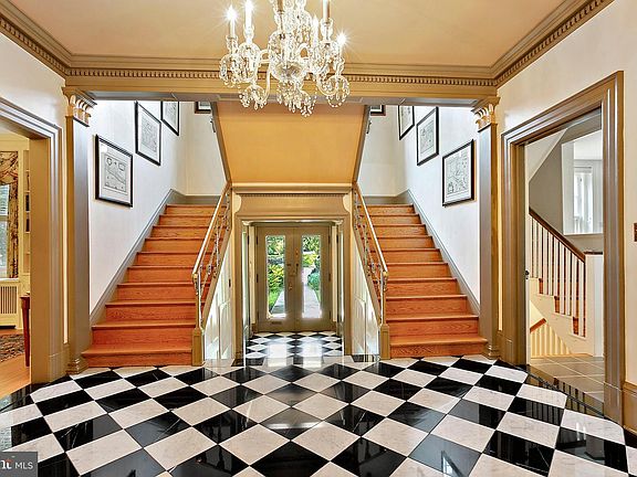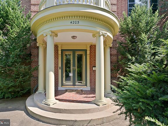 The classic semi-circular front portico surmounted by an oversize Palladian window leads to this elegant all brick Georgian home in a lush garden setting. Impeccably maintained and many updates. Beautiful architecture and millwork, Hardwood and heart pine floors, 4 fireplaces. Marble Foyer with double staircase, Library with built-ins, formal Living Room and banquet-size Dining Room, both with fireplace. Sunroom with wet bar, huge gourmet Kitchen with built-in banquette, tremendous cabinet space, Corian/granite counters and laundry closet. 2nd Floor Hall flooded with light from the Palladian window. Primary Suite with updated Bath and Dressing Room. 3 additional Bedrooms, 2 with fireplace and 1 en-suite with marble Bath. Updated marble shared Bath completes the 2nd level. 2 large Bedrooms, 2 Baths, Kitchenette and storage room on the 3rd floor. Lower Level with Club Room, Recreation Room, Exercise Room, Powder Room and wine storage Room. Incredible landscaping including in-ground Pool, shade gardens, border gardens and perennial gardens. Covered Porch with steps to shade garden and pool area. Great location on one of Roland Park's finest tree-shaded streets. CAC on 2nd and 3rd floors- drifts to main level.