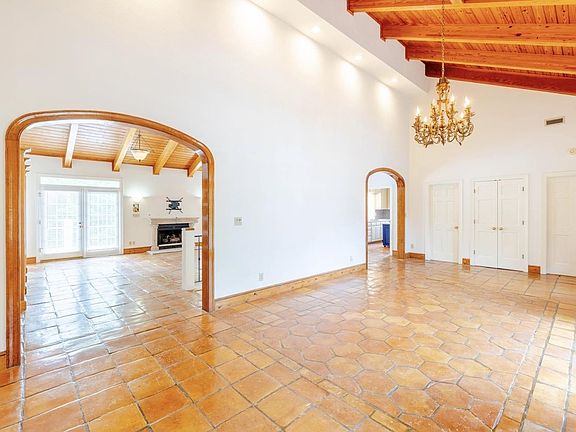 Enjoy the space in this 3 level Mediterranean style home that features Spanish tile throughout the main living area, Grand foyer, 1st floor primarybedroom, high ceilings in the family room overlooking balcony. Optional study or bedroom w/full bath. The elevator takes you down to 4 bedrooms each w/attached bathroom, living room or bonus. So much flex space in this home. Exercise room, Studio, Office. TONS OF STORAGE! Many options! Built in safe.View of lake in the winter. Close to everything! Does need work. Selling as is.