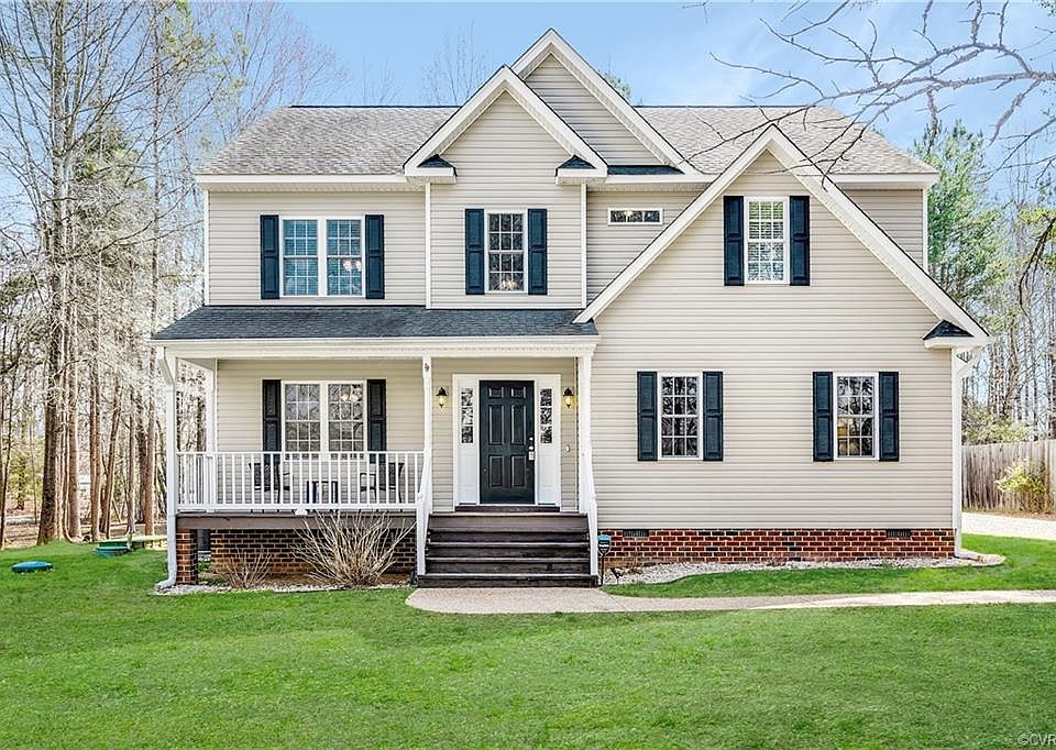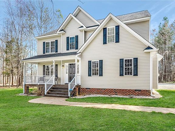 FRESHLY PAINTED WHITE KITCHEN CABINETS and downstairs! HVAC 3 YEARS OLD! Beautiful transitional on 1 ACRE lot! From the welcoming front porch you enter the 2 story open foyer, to the right is the family room with gas fireplace and to the left is the dining room - currently being used as an office, lovely 1/2 bath with pedestal sink, then the eat-in kitchen with custom, solid wood cabinets 41", with large pantry and glass French doors that open to a back deck, upstairs are 2 good sized bedrooms and a master bedroom with en-suite full bath with soaking tub and walk-in closet, also the laundry room is on the second floor and there is a walk up attic from the laundry room (attic could be finished square feet!) - plenty of room for storage! There are many updates from the 3 year old 2 zone HVAC systems, to the encapsulated crawl space, cleaned Duct system, aggregate sidewalk, built in shelving in the garage, cleared trees and added landscaping and fire pit. This home is move in ready with low maintenance Vinyl siding! Beautiful sunsets from the porch of this country home with easy access to I-64 and not far from Route 288... welcome home!