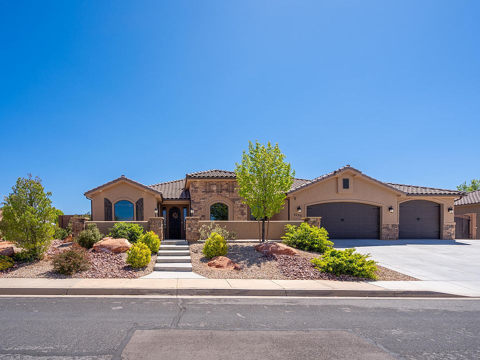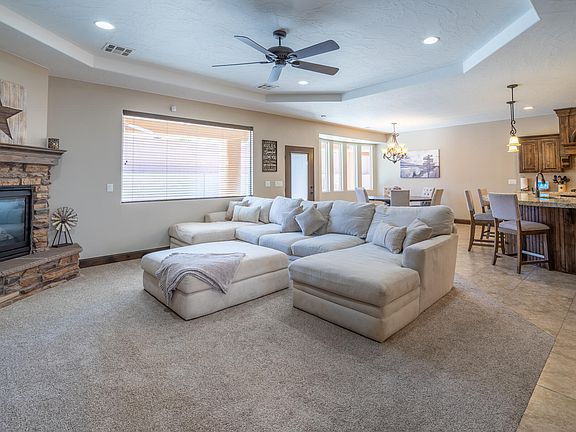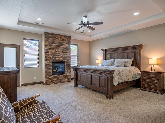 By far, this is one of the most adventurous places to live in Southern Utah. Situated at the base of Sand Hollow State Park, only minutes away from one of the most scenic red rock sandstone lakes in the western part of the United States, sits this stunning home that features a well-laid-out 2,813 SqFt open floor concept with 4 bedrooms including the office with built-in dark wood cabinets, 2.5 bathrooms, a large primary bedroom with a fireplace and a spacious en-suite bathroom. The primary walk-in closet is almost 200 SqFt, and it includes a private soundproof retreat room; the kitchen includes thick honed edge granite countertops with semi-circle large island, knotty alder cabinets, and the living room includes a fireplace and tall ceilings. The backyard features an amazing pool... (14' x 30') with a hot tub, built-in BBQ grill, and covered patio.