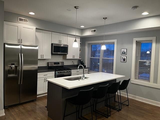 JUST LISTED! DON'T MISS OUT AS THIS IS A TOTAL GEM OF A RENTAL WITH W/D IN UNIT! Please text me for quickest response! AVAILABLE FOR A LEASE STARTING 5/1! Sorry NO PETS! This apartment is right above a store front and no other rentals in the building which makes for a private and quiet living experience. Very hard to find! Newly renovated with all stainless steel Samsung appliances - garbage disposal - dishwasher - gas stove - wine cooler and wet bar!! Washer and dryer in unit - hardwood throughout! Very good sunlight throughout the apartment! Bathroom features a walk-in shower with rain shower and regular shower head combo. Plenty of storage space below the sink. Plenty of closet space throughout the apartment. There is a private deck space out back as well! You can access the apartment from the front or rear! Plenty of street parking right out your back door! There is no permit required and there are always open spaces. Potbelly Sandwich Shop, Backlot Coffee, and Lou Malnati's Pizza are right across the street. Located right off the expressway makes for a quick drive downtown and ease to go wherever you need! The metra and the blue line are both a 2 minute walk from your front door! Please contact me for a showing! Text is preferred and I'll get back to you right away! Tenant will pay for utilities
