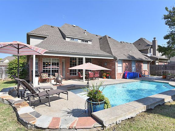 This home has it all! Enjoy the backyard with beautiful pool & shaded patio! Exceptional layout with 2 bedrooms plus office down. Open plan with formal dining & living room open to updated kitchen with new quartz, designer backsplash, stainless steel appliances and breakfast nook. Upstairs is a huge gameroom, 2 more bedrooms and a bonus room! Wonderful neighborhood with catch and release pond. Seller is a licensed OK Realtor.