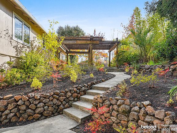 Come home to this beautifully updated Walnut Heights retreat, featuring a layout that perfectly balances elegance and comfort. The formal living and dining area, graced with picture windows, captures tranquil views of the front yard, while the old-world hardwood floors and handsome fireplace add charm. For culinary enthusiasts, the granite eat-in kitchen impresses with an expansive prep island equipped with a gas cooktop, two sinks, ample cabinetry, and stainless steel appliances. A breakfast nook, complete with sliding doors to the back patio, invites in the morning light and makes it easy to enjoy alfresco dining. The luxurious master suite is a true escape, offering picture windows, spacious walk-in closets, and a spa-like bathroom for ultimate relaxation. Three additional bedrooms, each with ensuite access, provide privacy and comfort for family and guests. The downstairs bonus room adds versatility, showcasing plush carpet, a wood-burning fireplace with a craftsman-style mantle, built-in shelving, and easy access to the backyard. Outdoors, a park-like yard awaits, complete with mature trees, meandering walking paths, garden areas, and several patios for relaxation or entertaining. Practical touches like an oversized two-car garage and abundant storage make this home as functional as it is inviting. Ideally located, this home is minutes from parks, scenic trails, BART, freeways, and the vibrant offerings of downtown Walnut Creek. Note: Fireplace is for decorative use only and cannot be used without consent from Belong.