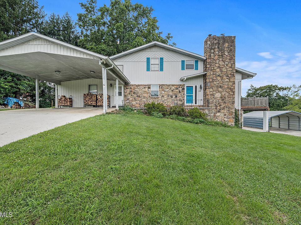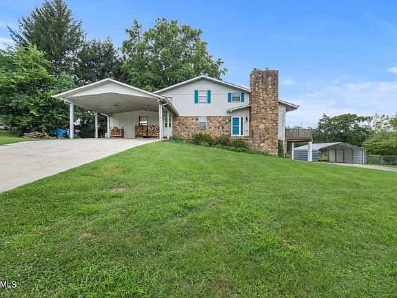*MOTIVATED SELLER* Endless potential with this unique 3-story, riverfront home on approximately 1.25 acres with 5 bedrooms, 4 bathrooms, over 3100 sq ft of living space, large fenced back yard, and a private dock all located on a cul-de-sac in a quiet neighborhood. The primary driveway has 2 car carport and entrance to the main level which consists of spacious primary suite with vaulted ceilings, laundry room, kitchen, den/dining common area, sunroom, and 2 outdoor spaces. Up the spiral staircase, a balcony overlooks the main floor common space and has 2 bedrooms with Jack-n-Jill bathroom. The basement has a bedroom, full bathroom, utility room, kitchenette, and 2nd common space with wood burning fireplace and stained concrete floors. Basement access via staircase and lower driveway with additional carport. Private dock on navigable section of The Little River also with nearby public boat ramp. Relax and enjoy the sunsets over the water or set sail and join the Vol Navy!