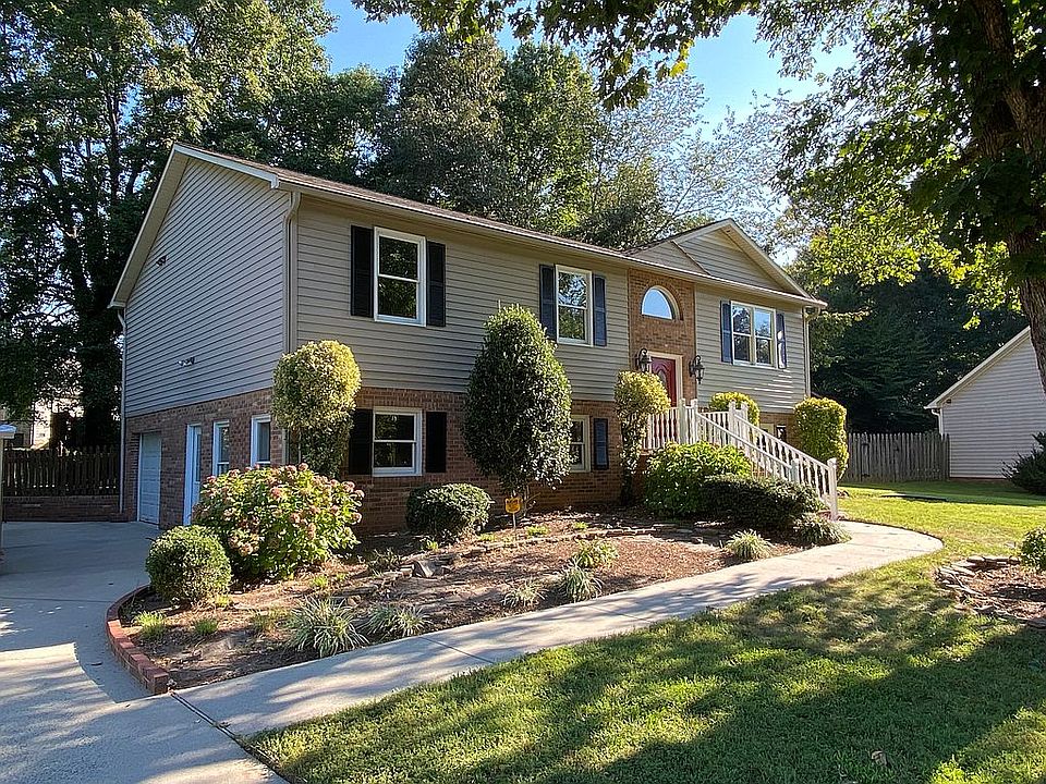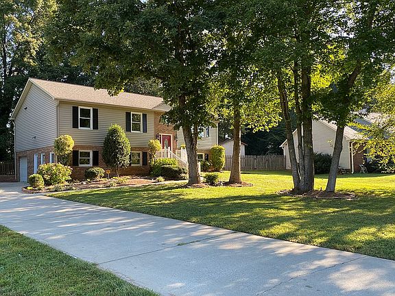 This beautiful split-level home located on a corner lot has 4 bedrooms and 3 bathrooms with +/- 2700 square feet of living space. First level has a in-law suite or that 4th bedroom and extra bathroom with a living room and fireplace for the older child in the family. The first level also has a large bonus room and a garage. This home has been updated with the following NEW improvements: new carpet, new hardwood flooring master bedroom, LVP in bathrooms, bathroom vanity cabinets, wall and trim paint, granite tops in kitchen, lighting and plumbing fixtures, exterior paint, decking boards. Also has a 10x12 storage building in the back yard. We will be taking highest and best offers Sunday evening, September 12th. Sorry NO buyers commissions. Call 336-918-8886 for a showing.