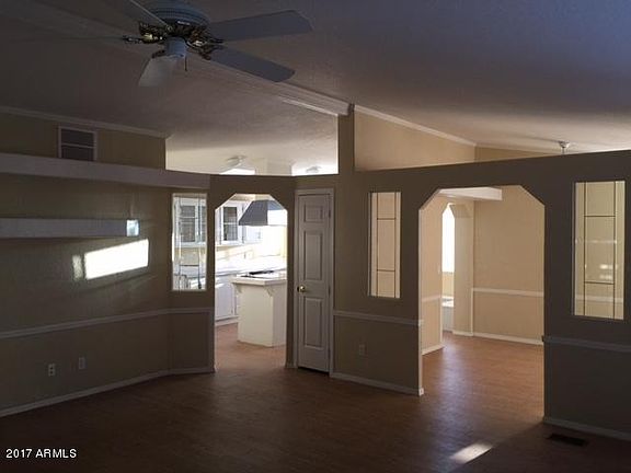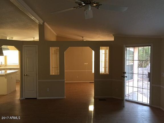 Great opportunity at this price! Manufactured home sits on 1.26 acres in New River area. Spacious floor plan, vaulted ceilings, large kitchen with good sized island, sun roof for great lighting. Separate dining , living space area. Inside huge laundry room. Enclosed Arizona room. Master is big with walk in closet. Master bath tub is torn out as owner was in process of redoing. There is a separate shower. Detached 2 car garage and storage shed on property. Great mountain views! This property is SOLD AS IS. This is an estate sale and trustee has very little knowledge of property.