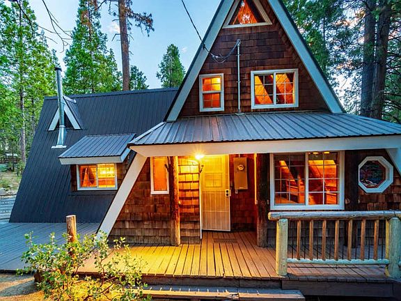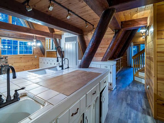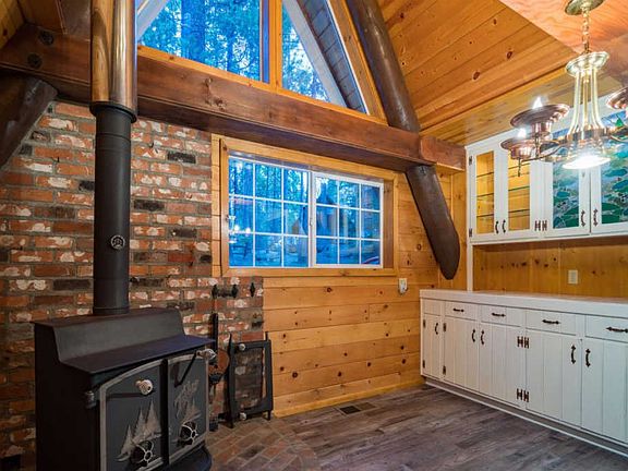 Welcome to this stunning Shaver Lake cabin located off of the center of town, within walking distance to local dining and shops. Upon arrival, use the wrap-around wood deck to enter the home. Enter into the spacious kitchen, featuring built-in appliances, a wood burning fireplace, two beverage refrigerators, a wood paneled refrigerator, and generous cabinet and counter space with glass detail. The kitchen flows seamlessly into the living room, which showcases vinyl plank flooring, a large stone fireplace, stained glass windows, wood planked walls, and built-in shelving, all with views of the pine trees. This cabin includes 3 bedrooms and 3 bathrooms, as well as a loft area upstairs. Outside, you'll find a courtyard for entertaining, as well as a wood storage area. Contact our team today to schedule your private tour!