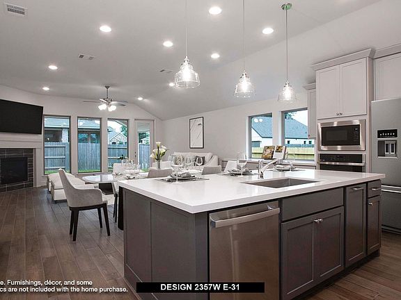 Ready for Move-In. Extended entry highlights 12-foot coffered ceiling. Home office with French doors set at entry. Dining area flows into open family room with a wood mantel fireplace and wall of windows. Open kitchen offers extra counter space, corner walk-in pantry and generous island with built-in seating space. Spacious primary suite. Double doors lead to primary bath with dual vanities, garden tub, separate glass-enclosed shower and two walk-in closets. Private guest suite with full bathroom and walk-in closet. All bedrooms include walk-in closets. Extended covered backyard patio. Mud room off two-car garage with epoxy floor finish.