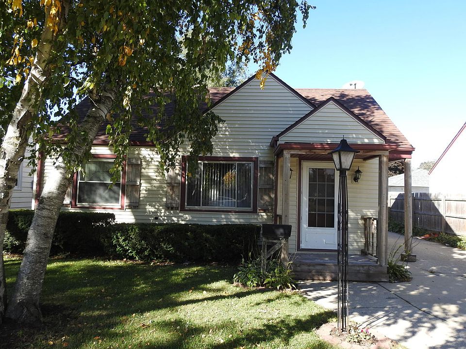 Rustic Cape Cod with knotty pine! Nice kitchen & dining combo with patio doors leading to a wood deck and a totally fenced in back yard. Large living room with 2 bedrooms & a full bath on the main and a large room upstairs which could be used for multiple purposes. Partially finished basement with half bath. Garden shed included.