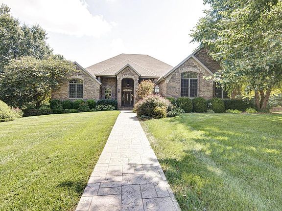 This highly regarded builder from Ozark custom-built this house for his own family! Magnificently designed with many extra features. All BRICK AND STONE on 1.1 ACRES with 5 acres of mature trees/fields behind! 6400 sq. ft., Open Floor Plan, Chef’s Kitchen, Formal Dining Rm, Hearth Rm, 3 Nat. Gas Fireplaces, 5 Bdrms, 3.5 Bathrms, Master Bath Steam Sauna + Heated Floors, American Colonial Oak and Pine Treatments Throughout, 3 Season Screened Porch Overlooking Oasis Pool, Hot Tub, Lounge Area, Waterfall and Mature Trees/Gardens, Custom Audio/Video Rm, Large Exercise/Rec Room, Storm Shelter, 3 Car XL Garage + John Deere Rm, Active Home Security System, 20 kVA Backup Generator, 4 Zone HVAC System, Well Irrig. System, Second Full Kitchen on Lower Level, Finished Walkout Basement, Professional Office with Built in Safe, Huge Attic Storage Areas. Ozark Schools. Call anytime to schedule a viewing or to request more information. (417) 224-0200.