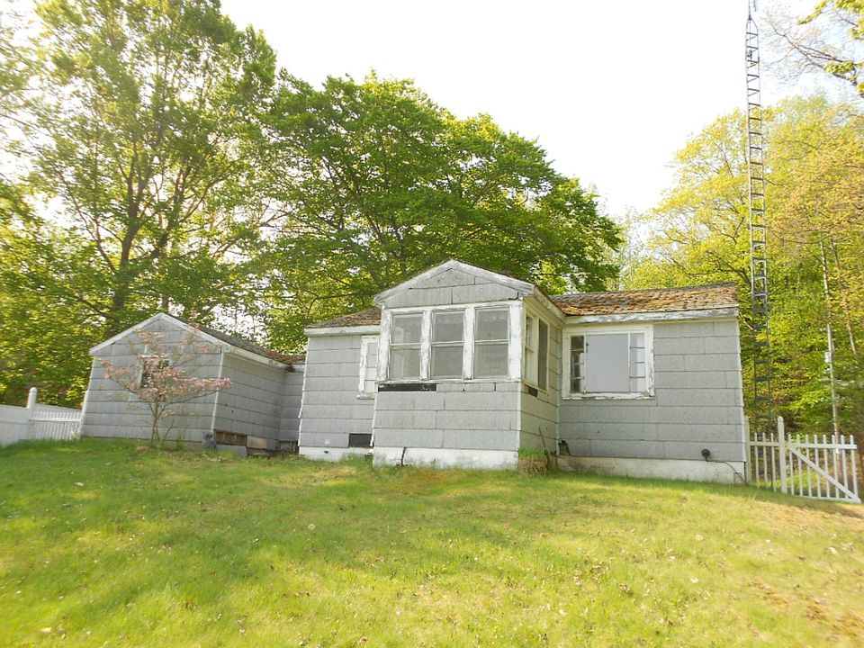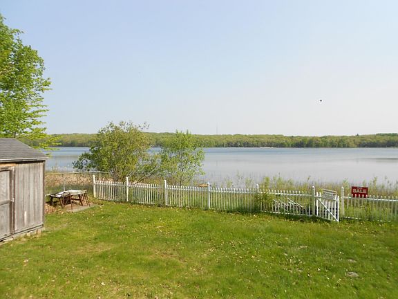 75 FT. OF GUNN LAKE FRONTAGE! Live on the lake for under $100,000. 2 bedrooms, 1 bath, enclosed porch, 1 car garage and full basement. Listing price reflects needed updating. Beautiful views of the lake. 90' aluminum dock. Pontoon boat is included.