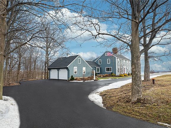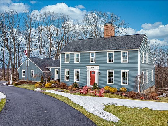 Stately Skaneateles Saltbox situated on almost 6 acres just outside the village. This handsome home offers the elegance of recent custom renovations while retaining traditional rustic touches:oak peg floors, multiple massive brick woodburning fireplaces, and hardwood paneling. The main floor boasts: cook's kitchen w/ beautiful handmade cabinetry, artful wood backsplash, leathered countertops and stainless appliances;cozy family room with a wall of glass overlooking the expansive deck and wooded acreage below;formal dining room perfect for entertaining, and spacious & bright living room opening to a private den(also 1st floor laundry, mudrm and half bath). The 2nd floor features a substantial master suite, plus 2 more sizable bedrooms & hall bath. The lower level with walk out offers a fantastic rec room, workshop, plus 2 additional rooms customizable as bedrooms / home office / hobby space. Further updates include mechanicals, water system, roof, windows, & garage doors. This property offers "country living" with mature woods, a rolling lawn w/ partially fenced area just minutes from the village, lake and school campus.