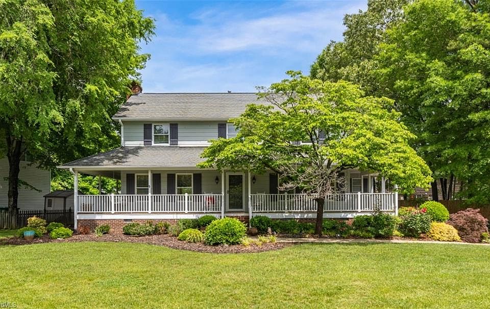 Welcome to this charming home located in High Point! The beautiful curb appeal of this home is met with a cozy wrap-around porch and sits on a nicely landscaped lot. Step inside to an open kitchen with an island and a spacious breakfast area, perfect for hosting family and friends. Also off the kitchen is the formal dining room. The living room offers plenty of space and is the perfect spot to relax after a long day. Upstairs you'll find the primary bedroom featuring an en-suite bathroom and walk in closet plus an extra closet for more storage. Two additional bedrooms, a loft area, and another full bathroom complete the second floor. The carport fits two cars and also has a small workspace, storage area. More floored attic space above the carport provides even more storage. The backyard is perfect for a garden or fire pit area and also has a small shed that will convey. Make an appointment to see this adorable home today! Open House Sunday, May 19, 2PM-4PM.