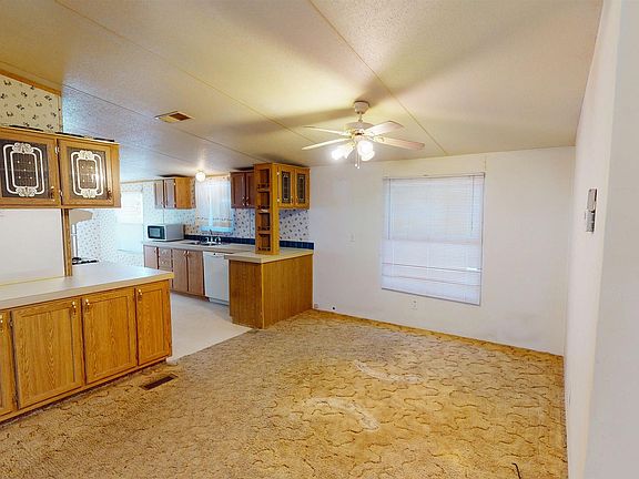 Spacious country living awaits in this 4-bedroom, 2-bathroom double-wide manufactured home, set on approximately 5.028 acres. Built in 1999, this home offers a generous 1,512 square feet per the Luna County Assessor; however, the manufactured home title reflects dimensions of 28' x 69' (Buyer to verify and perform their own due diligence regarding size). The home features a desirable split floor plan with a large master suite that includes dual sinks, a garden tub, and a separate shower. The remaining three bedrooms are well-sized, offering flexibility for guests, a home office, or hobbies. The living area opens into a spacious kitchen with abundant cabinetry and countertop space—perfect for everyday living or entertaining. Cooling is provided by refrigerated central air, and heating is central (note: there is currently no propane tank on the property). Utilities include Columbus Electric, a private domestic well, and a septic system. Outdoor amenities include a shed, a canopy ideal for horses or livestock, and a chain-link fenced area—great for keeping your fur babies safe. The manufactured home is considered real property with an INACTIVE MH title and was born on its current location. A structural engineer’s inspection is currently in progress. Enjoy the tranquility of wide-open space while having room to grow and make it your own!