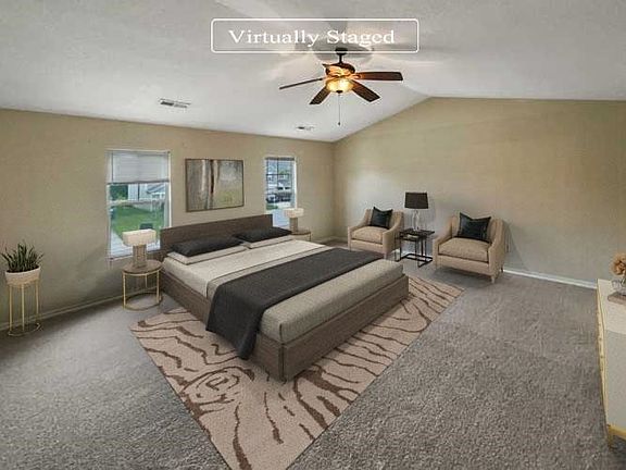This Knightdale two-story cul-de-sac home offers quartz countertops, and a two-car garage. This home has been virtually staged to illustrate its potential.