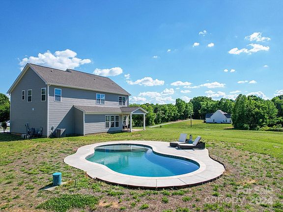 Step into your dream home at 4206 Mullis Newsome Rd! This exquisitely designed home with 4 bedrooms and 2.5 baths is set on a generous 1.27 acre lot. Outdoor living is elevated with a covered back porch and private gunite swimming pool with tanning ledge, perfect for enjoying the Carolina weather. Inside, experience the open and airy layout featuring a large kitchen with granite countertops and an island that opens to a cozy family room with a fireplace. The main level boasts LVP flooring and a stylish wood staircase. Additional features like a substantial drop zone, large walk-in pantry, and two walk in closets in the primary bedroom provide both style and practicality to this splendid home. Don't miss this one!
