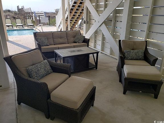 "LIFE IS GOOD" is exactly what it says. It is an investors dream with one of the highest rental incomes on the entire Grand Strand and has been meticulously maintained. It was built in 2019 and sets directly on the ocean offering 8 bedrooms and 8 and a half baths. Four of the bedrooms are master suites on the ocean and all the bedrooms have their own baths making it convenient and private. The home is raised with parking for 9 cars and two golf carts and features an onsite Level 2 Enel X electrical vehicle charger. The large, heated pool and spa are on the oceanside with plenty of lounge chairs and features a gas grill, outdoor dining, an outdoor living area with TV, and an enclosed shower and foot wash. An elevator runs from the parking area to all three floors above so guests do not have to carry heavy luggage or groceries upstairs. The first floor features a massive kitchen with plenty of cabinets, granite countertops, stainless steel appliances including two refrigerators and a convection oven along with a gas stove. The dining area is capable of accommodating 32 people and it, along with the large living area, have a panoramic ocean view. Completing the first floor are a bedroom featuring two queen beds, and large washroom with two sets of washers and dryers and wash sink. Doors take you from the living and dining areas to a large 2nd-floor porch overlooking the ocean with plenty of rockers to enjoy the ocean views. On the second floor are five bedrooms including four double-queens and three kings. Two of the kings lead to a third floor porch overlooking the ocean with rockers to enjoy the sunrise. The third floor features a large media area, play room with pool table, wet bar and refrigerator, and two additional double-queen bedrooms. One can search and search and not find anything like this on the Grand Strand. It is close to area restaurants, golf courses, shopping, and world class entertainment. Put this one on your list to see. You need to visit to appreciate all it has to offer!