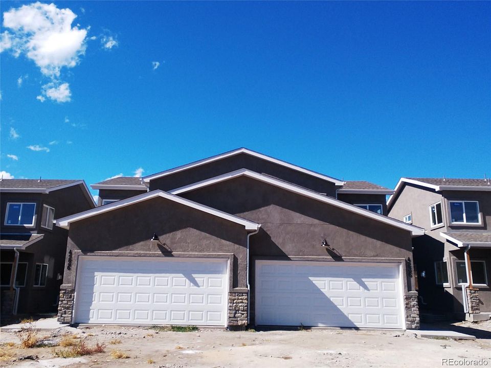 Excellent opportunity to invest in popular location with lots of rental demand. Each unit has 4 bedrooms, 3 bathrooms, 2 car garage, and full unfinished basement that could accommodate one additional bedroom and bathroom. Open, spacious layouts with 9 foot ceilings on main and upper levels! Modern open concept kitchen, living, dining space include large island and walk-out to back yard. Included are granite counters, island, and backsplash in the kitchen, stainless steel gas range, pantry, fireplace, and back yard fence. Upgrades include wood-like luxury vinyl plank in main living areas. Available upgrade options include A/C and basement finish. Select your paint color. Convenient office and powder room at entry. Master bedrooms have full attached bathrooms with double vanities and double closets. Stucco two-story, finished living space is 1708sqft, with 2599sqft total per unit. Convenient to Academy, Powers, Austin Bluffs, and UCCS. Private cul-de-sac, quiet location. Move in April 1.