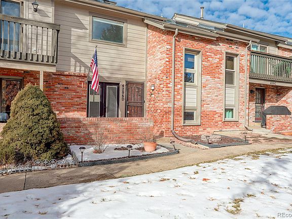 The location on this one is FABULOUS, the condo opens up to open green space from the front of the residence. The unit is conveniently close to the pool and tennis courts. Once you enter this unit you will love the skylights and the open ceilings to the upstairs. You are greeted with a beautiful gas fireplace and dining room that leads you into the Cherry Wood Cabinet filled kitchen. The living room also features double doors that open onto your personal front porch private space which is great for sitting out front drinking your morning coffee while enjoying the view of the open green space and mature trees. The first floor also features a powder room. The stairs can take you down to the basement/garage or up to the Owner’s suite. The basement includes the 2-car garage and laundry room. As you take the stairs to the second floor you will be delighted to find a beautiful open loft space with a built-in desk for teleworking and featuring a rarely seen wet bar. The Owner’s Suite features spacious tall vaulted ceilings and a gorgeous 5-piece ensuite bathroom with updated finishings. This beautiful condo is 17 minutes to Buckley SFB and 5 minutes to Quincy Reservoir. There are plenty of shopping and dining areas within a short driving distance.