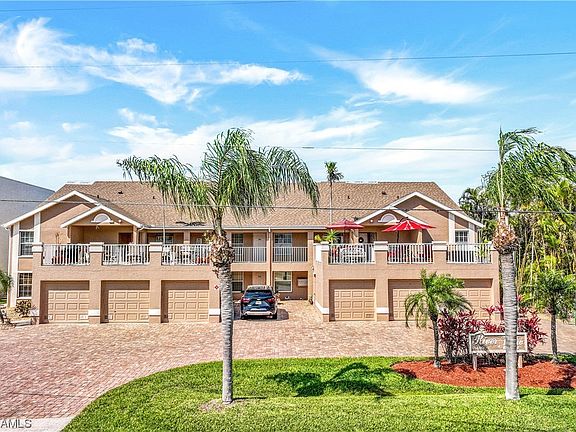 Welcome to this stunning, renovated sailboat access condo. This home features 1721 SqFt under air, 3 bedrooms, 2 bath, a 1 car garage, plus a dock with 7,000 boat lift and remote. The owners spent a fortune in money and sweat to transform this place into the modern era. Check out the European contemporary island kitchen featuring rollout shelves and drawers, plus state of the art appliances, a desk/work area plus wet bar in the expansive great room, Luxury Vinyl Tile that is kid, pet and waterproof throughout plus sliders to the oversized lanai. An added bonus is the pulldown stairs to the attic with a huge stand up storage space! The 18x30 deck out the front door with great sitting area, river breezes and views directly across from Jaycee Park and the Caloosahatchee River. This one is a rare gem here in the Cape with it's 3/2/1 plus 7k boat lift on a wide canal that's literally just around the corner from open water. Tastefully furnished and appointed, so you can move right in! You'd better hurry though as we expect this one to be HOT! The condo building roof is being replaced and is fully funded.