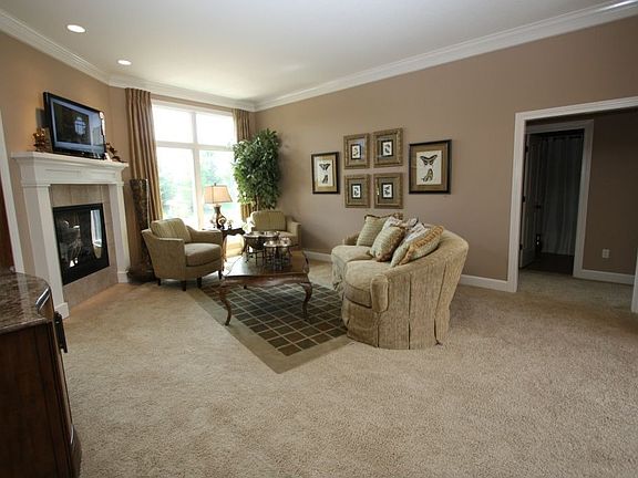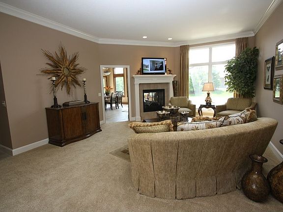 Hawthorne villa under construction by Granite Ridge Builders. Split bedroom ranch plan with 9' and 10' ceilings thru-out. Great room and hearth room share a 2-way gas fireplace. Cathedral ceiling with trapezoid windows in hearth room and nook. Open kitchen features Grabill custom cabinets, 42 inch uppers, island with breakfast bar, corner pantry and stainless steel appliances. Large master suite with a tray ceiling, walk-in closet, ceramic shower, garden tub and raised double sink vanity. Oversized trim, Andersen windows, irrigation system, extra wide pull-down attic stairs, 3 car garage, 3rd bay pre-wired for future opener and Energy Star ceritifed!