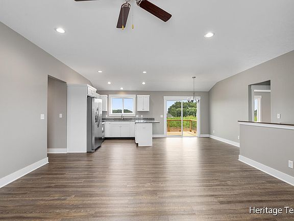 Newly constructed ranch home, open plan with cove ceiling, living room, kitchen with snack bar, granite countertops and stainless appliances, dining area with slider to deck, split plan primary suite with walk-in closet and primary full bathroom, and main floor laundry room, two additional bedrooms and full bathroom, unfinished daylight lower level, storage and utilities, plumbed for a bathroom, two-stall attached garage. Yard finished to final grade. No seeding or landscaping. Listing Agent has financial interest in property.