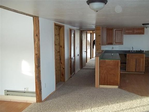 Beautiful country home with open floor plan and plenty of natural light. 2 bedroom, 1.5 bath, 1297 sq ft house set on 3.9 acres of level, partially wooded, usable land. Remodeled with a new roof and carpets. Huge shop with lean-to for all of your toys! Equipped with a bathroom and partial kitchen, it can also be used as a guest house. Amazing mountain views and great location next to a minimart, only 15 minutes from town!
