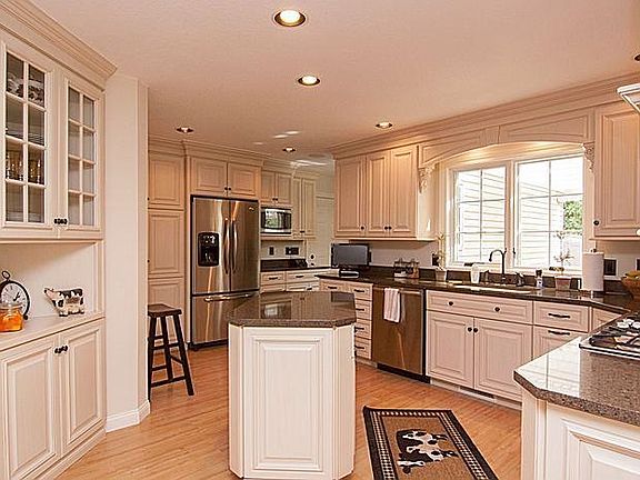 Edgewild Estates sprawling ranch with 4 bedrooms & 4 baths. Beautifully updated w/great design & details! New Grabill cabinetry w/quartz counter tops, large pantry, center island & top-of-the-line appliances. This OVER the top Great Room, w/classic stone-front, gas fireplace & warm wood vaulted ceilings makes this a special room! Full finished basement including 14x15 family room with electric fireplace & a large kitchenette for full service! Great storage & 2nd staircase to garage. Backyard oasis with in-ground pool (3' - 9' depths), patio and a deck covered with the classic pergolas.
