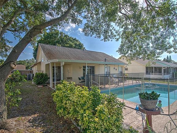 Lovely Pool Home in Braden River Lakes! This special home has 3 bedrooms and 2 bathrooms with private pool overlooking the golf course. The updated kitchen features real wood cabinets and rich granite countertops. Split floorplan. The master suite boasts vaulted ceiling, en-suite and spacious walk-in closet. Open plan with vaulted ceilings in living room and dining room. Roof is only 6 years old! Community offers a sparkling pool, playground and tennis courts overlooking the Braden River. Low HOA fees and no CDD fees. This home is a must-see!!