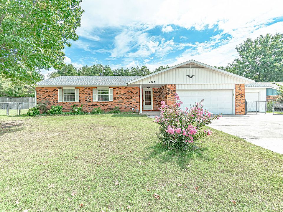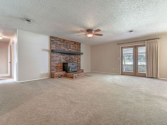 Classic brick home with spacious backyard! Living room features wood burning fireplace with a wood stove! Tile covers the kitchen with lots of counter space. Covered back patio with beautiful greenery in the backyard would be great for hosting!