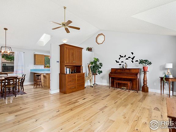 An Affordable Dream Come True! Your patience has paid off in discovering this well maintained and upgraded home! Situated near schools, Front Range CC, Troutman Park, and the many wonders of West Fort Collins this is a location where you can really LIVE! With an attractive curb appeal this is a home you will be proud to call your home. Step under the front covered porch and enter onto the beautiful hickory hardwood floors which span this main level that includes the living area, kitchen, and dining space. The kitchen has ample counter space and the full complement of included appliances featuring a Bosch dishwasher. The family room is nearby and is a great place to relax near the cozy fireplace. Also on this level is a powder bath and laundry just off the garage. Renewing yourself after another great day is a pleasure in the primary suite which is upstairs. The skylight bathes the bathroom with natural light creating a wonderful refreshing energy. Two secondary bedrooms are also upstairs, and each have ceiling fans to keep everyone comfortable year-round. Enjoy the great outdoors in the fully fenced backyard that has several raised gardening boxes and mature shade trees to create a comfortable space to gather. The mostly finished basement has a recreation room and a guest bedroom or home office that is away from it all. Other fine features included: Newer owned solar panels (2022), Newer A/C (2022), Newer Furnace w/Humidifier (2022), Newer Hot Water Heater (2022), and active radon mitigation system. This home is respectfully price and pre-inspected for your confidence and convenience.