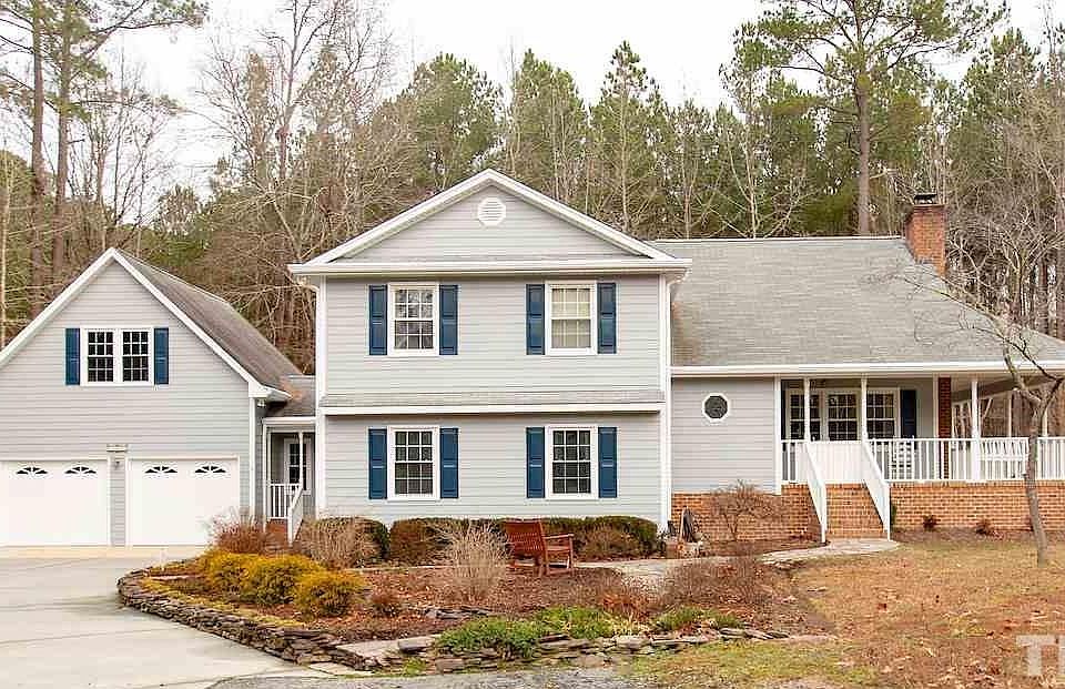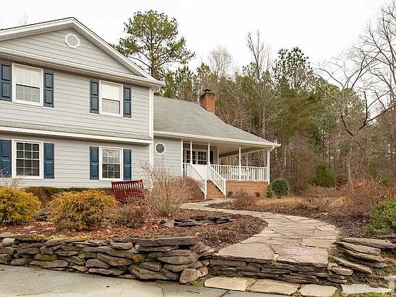 Don't miss this lovely home on 5.7 acres with TONS of storage. Just a 15-minute drive to downtown Durham, but in another world in terms of privacy, space, & quietude. The high-end custom kitchen is fantastic, would be appropriate in a house at twice the price. HUGE dry basement is a rare commodity. Lovely wrap-around porch, bright sunroom, cozy den, vintage barn for tinkering, maybe horses or a few goats & chickens. Think BIG garden. Get away from it all & get the space to enjoy life, inside & out!