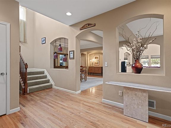 Rare listing in The Reserve at Renaissance. One owner of this beautiful 4888 square feet home located across from green space. New: roof, exterior paint, water heater, microwave and sump pump. Mature landscaping gives shade and privacy. Extended back patio in a fully fenced backyard. Open floor plan with four living areas, natural light, mountain views and so much storage! Two gas fireplaces, large kitchen with pantry to match. First floor primary suite with two walk-in closets. Upgrades: James Hardie siding, floating pier foundation, A/C, whole house humidifier, screened security door on front entry door, kitchen and bathroom cabinetry, half bath vanity, sprinkler and security systems, thermal blinds, custom office/library off the loft. Basement ready to finish into large living area, bathroom and four more bedrooms.