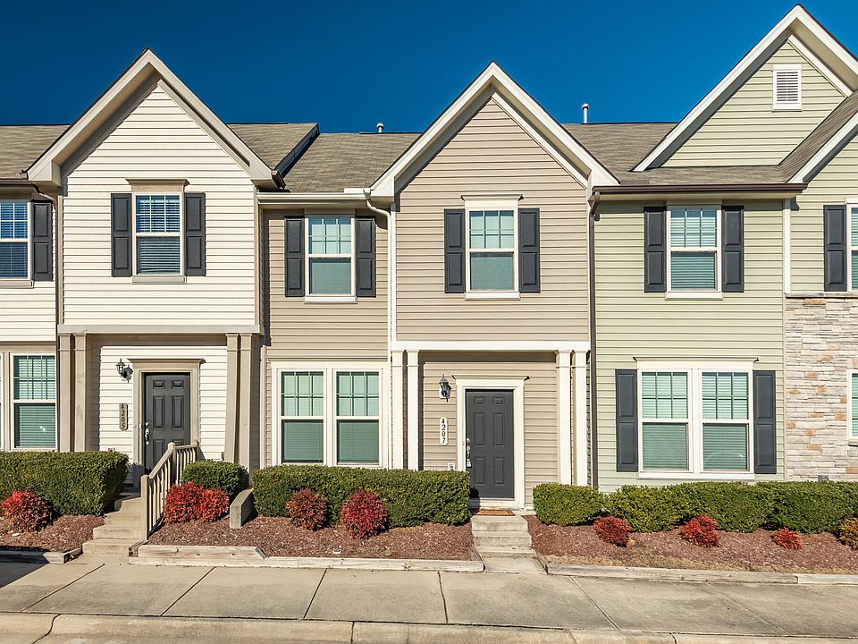 Beautifully maintained townhome with an open living & kitchen concept in the well-maintained neighborhood, Shearon Farms. Kitchen features stainless steel appliances and lovely granite countertops. Separate dining & office/bonus room on primary floor. Upstairs features 3 bedrooms, including large master w/dual walk-in closets and double vanity in the ensuite bathroom, laundry room, 2 guest bedrooms and an additional full bathroom. Out back, you'll find a patio & outside storage room for additional storage. Heating system replaced in 2022! Subdivision features a lovely pool w/cabanas, playground and a pond w/a picnic area. Conveniently close to I-540 with easy access to shops & restaurants in Wake Forest and Raleigh! *pictures are virtually staged*