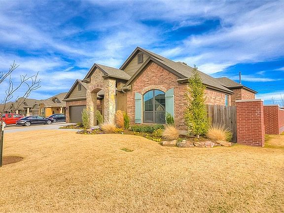 Your chance at a beautiful model home loaded with upgrades! Open split plan with large dining, living and breakfast area open to kitchen. Oversized island with seating facing living room. Striking designer colors and fixtures abound. 3 bedrooms, 3 full baths plus a powder room. Grand entry, intentional study and large upstairs bonus space with one of the full baths. Ample trim and cabinetry throughout. Garage is a 3 car tandem with more square footage than typical 3 door garage. The fence is six foot brick on two sides. Large landscaped lot with in ground sprinkler system. Conveniently located in Northwest Norman with great I-35 access. Carrington features multiple green spaces, walking trails, lakes, open cabanas, two clubhouses and two pools.
