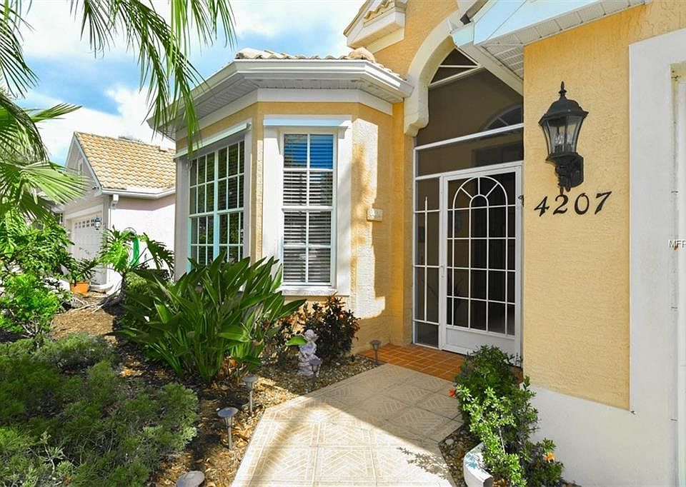 DRASTIC REDUCTION!!! THE OWNER WANTS TO MOVE!!! MAKE AN OFFER!!!This is a spectacular home in Villa Rosa! The touches that have been added are beautiful and will please any discerning person. The front door is glass and wood and you walk into a foyer which has a den and an office off of it and can be a possible 4th bedroom. At the end of the foyer you are greeted by a beautiful wall mural and the first of many wood touches added by the owner. The dining room is spacious and separate. The 2 other bedrooms, laundry room and 2nd full bath are off of this section of the home. Walk further into the kitchen which has granite counters with a matching backsplash, and a separate dinette attached, which is included in the kitchen dimensions. There is also a closet pantry and breakfast bar which seats many! The kitchen opens to the large great room which has the master en-suite off of it. There is a large walk in closet, and in the master bath is a garden tub, dual sinks and a separate shower stall. Best of all is the beautiful view of the lake and fountain as you walk into the home. And you have hurricane shutters! An inspection has been done and good news all around! (Available to a serious buyer.) The owner will paint the outside as soon as it is approved. The price has dropped $22,000 !! Come see for yourself what a gem this is....
