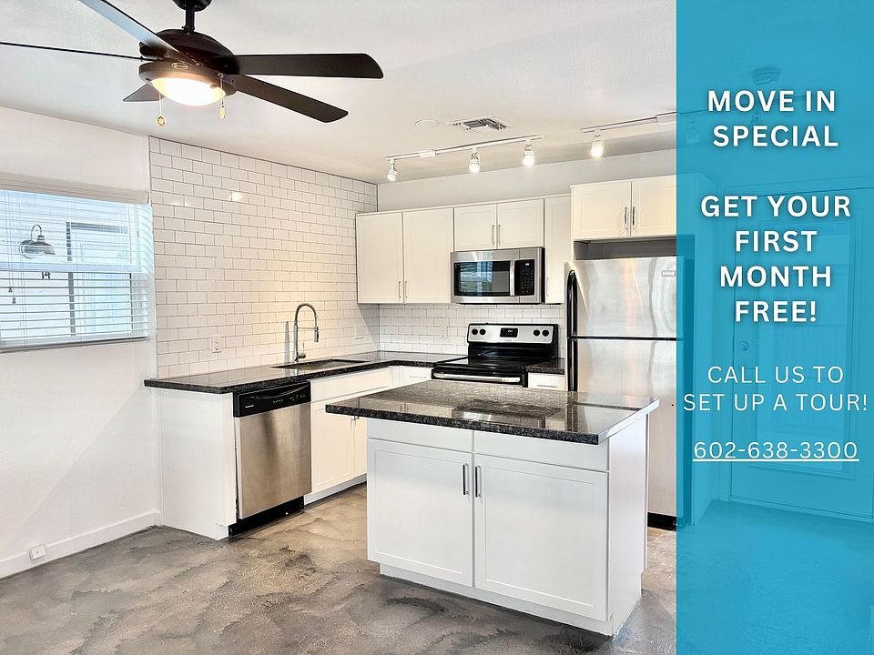 *MOVE IN SPECIAL - LARGE FRONT PATIO NEAR BILTMORE FASHION PARK!* Fully Remodeled 1 Bed 1 Bath at Moderne at 27th! Large Front Patio and in Unit Washer and Dryer! Coming Available March 21st, 2025! *MOVE IN SPECIAL! 1ST MONTH FREE WHEN SIGNING A 13 MONTH LEASE OR AN 18 MONTH LEASE!* Fully Remodeled 1 Bed 1 Bath at Moderne at 27th! Large Front Patio and Private Backyard! Great Value for an amazing Biltmore/ Arcadia Location! Excellent value for a great Biltmore/ Arcadia location! This will not last! Moderne at 27th is a 14 unit apartment community. The interiors have been renovated to provide its residents with a modern, yet homey feel! Stainless Steel Appliances, Epoxy Concrete Flooring, In-Suite Washer-Dryer, Modern Countertops With a Large Kitchen Island, and Ceiling Fans. This Unit also has a Large Front Patio and Backyard Space! This great location would put you just in between The Biltmore District and Arcadia! Live close to some of the area's popular dining spots such as The Wandering Tortoise, The Porch, Hash Kitchen, Dutch Bros, and so much more! You are just minutes away the 51 which makes getting around quick and easy! Please Only Inquire if you Meet the Following Requirements: No Smokers. No Crimes Against Children. No Evictions or Bankruptcies Within 60 Months of Application Date. Household Income of 3x the Monthly Rent is Needed. Proof of Income is Required. Acora Asset Management LLC Processes Full Credit & Criminal Background Checks on All Applicants & Complies With All Fair Housing Laws. Moderne on 27th is pet friendly community welcoming both cats and dogs! Pets are $25 per month & one-time $150 pet fee. Residents responsible for SRP Electric! *MOVE IN SPECIAL! 1ST MONTH FREE WHEN SIGNING A 13 MONTH LEASE OR AN 18 MONTH LEASE!* Terms: Rent: $1,395 Security Deposit: $800 (On Approved Credit) Utility Reimbursement Charge: $65 per Month (Includes Water, Sewer and Trash) Application Fee: $65 per applicant Resident Services Charge: 2% of Monthly Rent Renters Insurance is Required Lease Terms: 12, 13, or 18 Month Leases Offered by Acora Asset Management, LLC Designated Broker: Colin Ralls Now Accepting Applications!