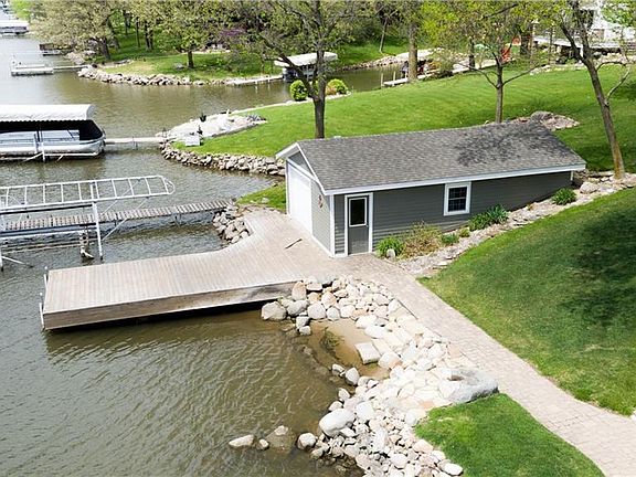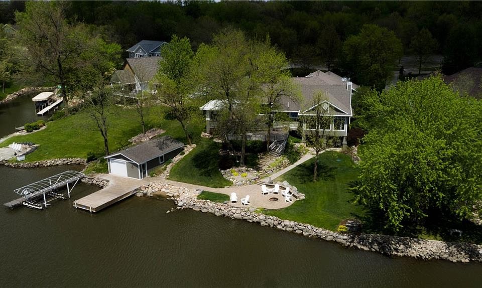 This gorgeous waterfront home on the lake's east side is nothing short of sensational! Or you might call it SUNsational for its incredible outdoor living spaces, water views and opportunities for lakeside entertaining. No detail is overlooked, from the beautiful Craftsman-style details in the cabana pergola to the extensive decks and landscaped areas - built-in bonfire, sandy beach, cantilever dock, covered patio, and yes, even a boat house! High expectations for the inside? They will be exceeded in every way with sweeping water views, stunning architectural elements, solid wood floors/trim, and high end finishes. Start planning your summer gatherings because there is room for everyone with four large BRs (plus office/nonconforming BR!), three baths, LL media room, dedicated workout room, and so much more. Bonus! Don't miss the master suite, it will take your breath away!