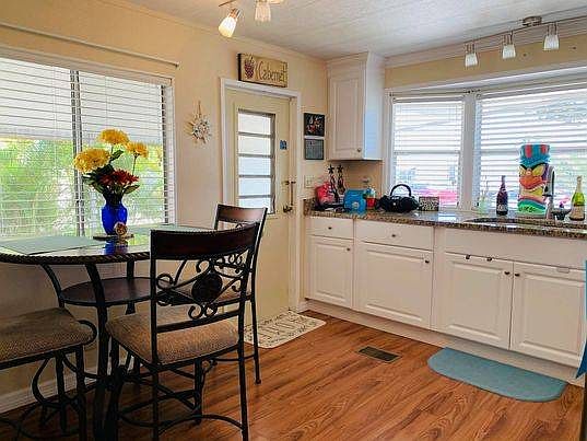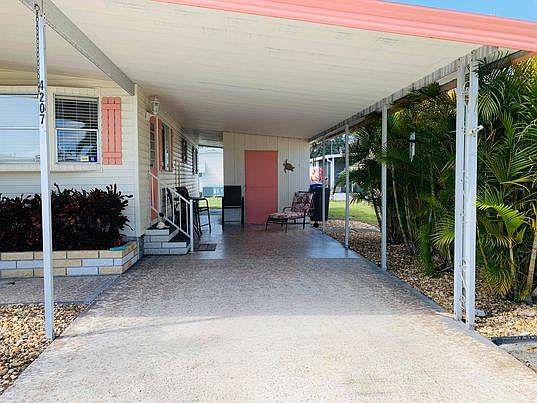 Wow! Looking for an upgraded and updated mobile home in the Sunshine State look no further. This two bedroom two bath home is being sold partially furnished. The kitchen area has an eat-in area, laminate flooring throughout the kitchen and living room, and hallways. Granite countertops and stainless steel appliances in the kitchen. The bay window over the sink is wonderful for optimal sunlight to shine through. They are vertical blinds on the sliding glass doors leading out to the front screen lanai for privacy. The master and the guest have carpeting ceiling and large closets for storage. Both bathrooms have been updated with new toilets and vanities. New updated plumbing and the electrical panel and this home just had a current four-point inspection passing with flying colors. Make this little piece of heaven yours. Lot rent $895.00. Water sewer trash and Lawn Care are included with Lot rent. Colony Cove has been named the best retirement community in the last six years. This community is designed with many amenities from fishing piers, clubhouses, pavilions, private boat docks, and boat marina. Game rooms, libraries, six heated swimming pools, shuffleboard, tennis, and the list goes on and on. Colony Cove is a pet-friendly community as well.All listing information is deemed reliable but not guaranteed and should be independently verified through personal inspection by appropriate professionals. Integrity Mobile Home Sales cannot guarantee or warrant the accuracy of this information, measurements or condition of any property. Measurements are approximate. Lot rent is subject to change.
