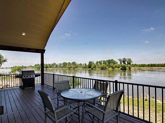 RARE Elevated Riverfront Property situated on 1.36 acres of Missouri River Frontage! Cabin was built in 2017 on engineered concrete pillars and has amazing panoramic river/countryside views. Relax out on the large covered deck or entertain your guests on the river enjoying boating, fishing, swimming, & bonfires. This is a perfect design for a riverside retreat boasting natural light from the floor to ceiling windows, high/open ceilings, and warm/inviting dcor! Spacious Great room is open to the kitchen with ample cabinets, counter space, island, and stainless appliances. Two main floor bedrooms plus lots of space in the loft that has amazing views of the river. Property includes the cabin, 2+ car garage, riverfront, sand area great for swimming or fishing, plus 1.36 acres of land that includes both sides of the mouth of the Mud Creek. Other features include reverse osmosis water purification, water softener, cement board siding, and a covered composite deck.