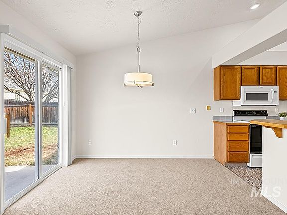 A fresh single-level home in desirable SE Boise, where the foothills and Boise River provide a bounty of outdoor recreation! This relaxed community enjoys nearby access to dining and shopping in Bown Crossing, and close access to Micron and Boise's downtown core! Recent updates breathe new life into this move-in ready home, including new carpet and interior paint throughout, creating a fresh canvas to make your own. Large windows and vaulted ceilings accentuate the open great room, providing an accommodating setting for everyday living and entertaining. Vaulted ceilings carry into the primary suite where an impressively-sized bedroom is met with an en suite bathroom and dual closets. The spacious fully-fenced yard presents the perfect space for open-air entertaining and play, without requiring too much maintenance! Located minutes from Boise State University and Micron, this residence would make a fabulous investment property or starter home in SE Boise with unrivaled outdoor access and short commute times.