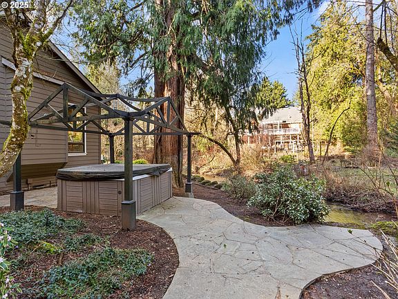 Incredible main floor living custom built home on over 1 acre on peaceful stream. The feeling of rural living but only minutes to Portland! Hardwood floors throughout main floor, high ceilings, walls of windows. Custom kitchen with triple ovens, quartz counters, stainless appliances, bay window nook. Great room with stone fireplace and French doors to your private patio. Incredible Primary Suite with vaulted ceilings, walk-in closet with custom organizers, marble floors, soaking tub, double sinks, tile shower. Main floor mud room with custom doggie shower. 3 car extra large garage. Multiple rooms upstairs for extra bedrooms, tech nook, bonus room, workout facility, wine storage room, and more! Over 1 acre level lot with flagstone patio, gazebo, hot tub, all overlooking the gorgeous peaceful stream. 1 bedroom/1 bathroom ADU for guests, rental income, or more! Incredible location!